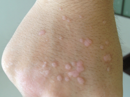 2、疣体好发于面部,如额部与颊部,还有手背与前臂,另外还有颈、胸、腿等也可受累发病。