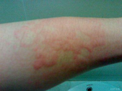 荨麻疹又称风疹块,皮肤上突然出现的暂时性水肿风团。分急性与慢性两种类型:急性荨麻疹起病急,皮肤上出现数目不定、大小不等的白色或红色风团,高出皮面,境界清楚,形态不规则,有剧烈的瘙痒,数小时内风团逐渐消失,但可发生新的风团,此起彼伏,一日内可发生多次。